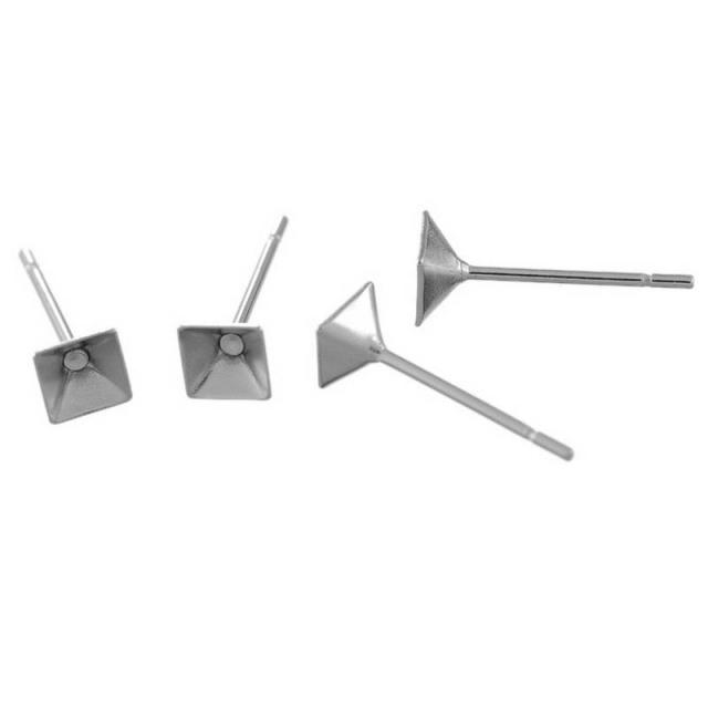 4mmスクエア台座ステンレスDIY用スタッドピアス 1個販売 サージカルステンレス316L 四角形 ジルコニア ストーン ラインストーン ジュエル 4ミリ 4.0mm 20G 20ゲージ ステンレスピアス パーツ キャッチピアス ポスト 小さい四角の石のピアス 手作り ハンドメイド 金具 部品