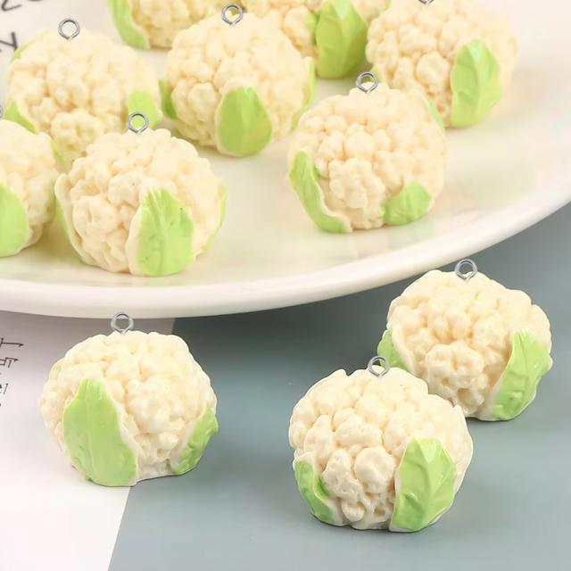 野菜のカリフラワーをモチーフにしたユニークで面白い食玩や食品サンプルのようなチャーム用のマルカンが付いたDIYクラフトパーツです。