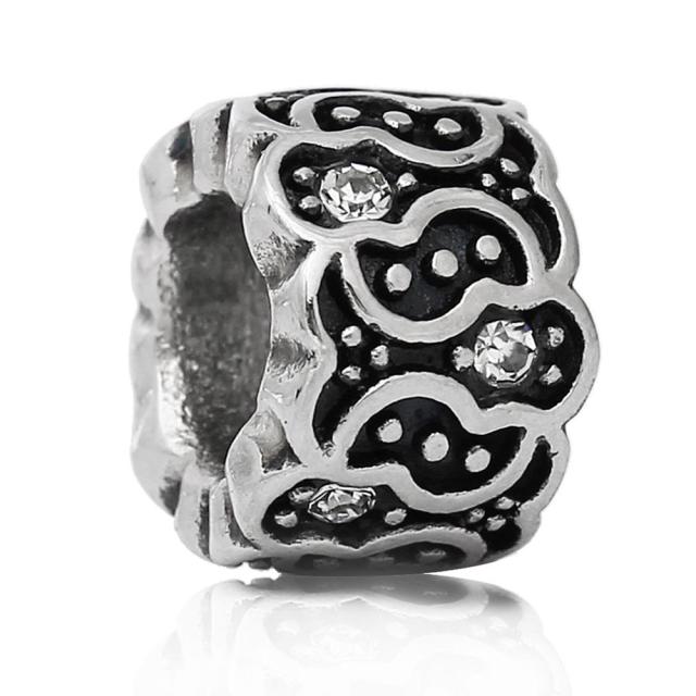 6mm用 6mmワイヤー用 6mmテグス用 6ミリ革紐用 6.0mmロープ用 ステンレスシリンダーパーツ(ジャルマハル)/1個販売 サージカルステンレス ビーズパーツ 通す ネックレス ブレスレット アンクレット DIY 手作り 材料 フリマ 部品 ハンドメイド 穴開き クリスタル ジルコニア