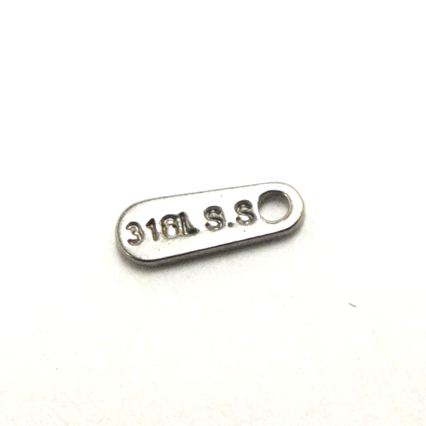 サージカルステンレス製のプレートにステンレスの316L S.S(サージカルステンレス316Lの意)の刻印を打ち込んだステンレスパーツ。サージカルステンレス316L素材のステンレスパーツ。ピアスやネックレスのチャームパーツや、ブレスレットやアンクレットのパーツなど、アクセサリーのデコレーションやDIY、修理などに使える。しかも安心で丈夫なステンレス素材なので、高級感もあって低アレルギー、丈夫で長持ちしてくれるのもうれしい。自分でアクセサリーを作る人には最適のアイテムです!