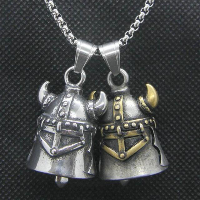 海賊の角突きのヘルメットのような兜をモチーフにした鐘のサージカルステンレス316L製のベルチャームペンダントトップ。結婚式やパーティーに最適のサージカルステンレス316L製のペンダント。