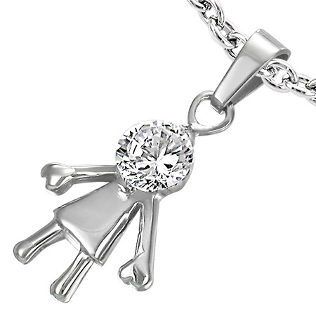 大きなクリスタルのジルコニアをセットしたワンピースを着た女の子がモチーフのペンダントトップ。 キーホルダートップにも使いたいステンレスパーツ。 ステンレスチェーンだけでなく、皮ひもにも似合うおしゃれなペンダントトップ。 ペアアクセサリーやプレゼントにも最適! 素材にボディピアスでも使われるサージカルステンレスを使っているので傷つきにくく、アクティブに使ってもOK! その上医療用ステンレスなのでアレルギーも安心です。 ステンレストップのみで買えるので、ネックレスパーツとしてだけでなく、キーホルダートップやイヤリングパーツなど、色々なステンレスパーツとして、自由自在にアレンジが楽しめるオシャレなステンレスアクセサリーです。 ※チェーンは別売りです。