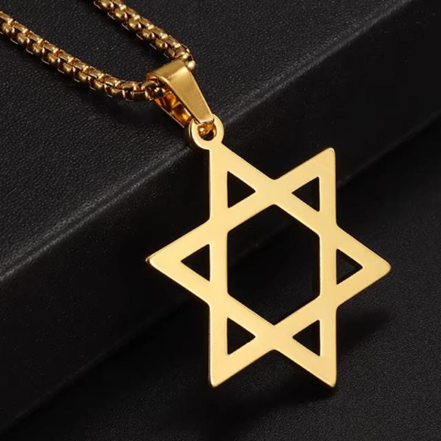 大きめの金色の六芒星のダビデスターを甲丸リングチェーンに通したサージカルステンレス316L製ネックレス。