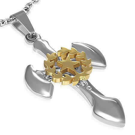 バーニッシュスタークロスペンダントトップ ステンレスペンダント サージカルステンレス316L ネックレス ステンレスパーツ チョーカー メンズ レディース 低アレルギー アクセサリー ゴールド 十字架 金メッキ 星 月桂冠 ローリエ 高級 男性 男子 プレゼント ギフト