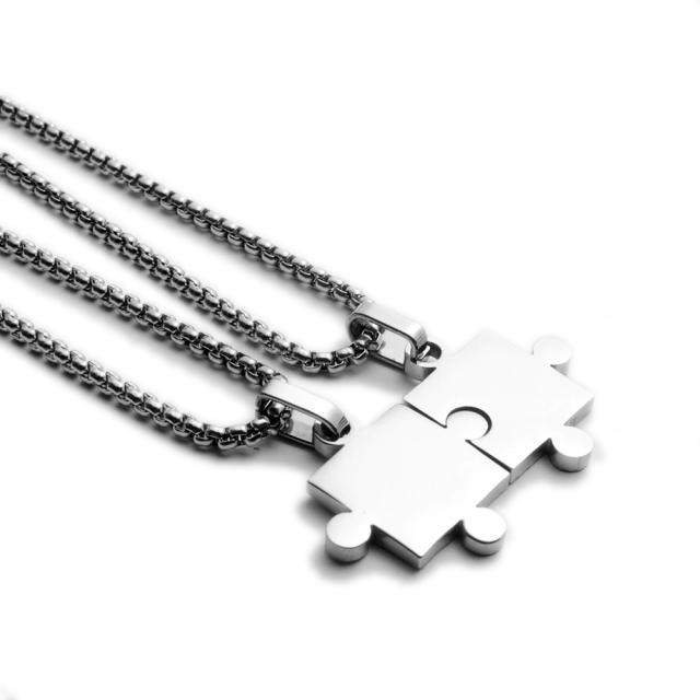 ジグソーパズルのパーツ2個を組み合わせたカップルにおススメのサージカルステンレス316L製のネックレス。
