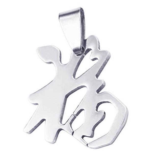ステンレスカラーの銀色シルバーで漢字の福をデザインしたサージカルステンレス316L製のペンダントトップ。