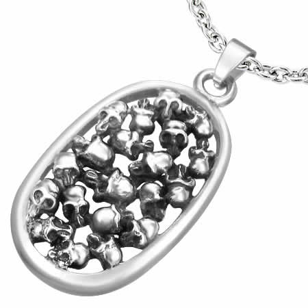 セメタリーステンレスペンダント ドクロ スカル ガイコツ 不気味 髑髏だらけ サージカルステンレス316L ネックレス パーツ メンズ レディース トップ ペア ステンレスペンダントトップ ステンレスパーツ アクセサリー 首飾り キーリング キーホルダー