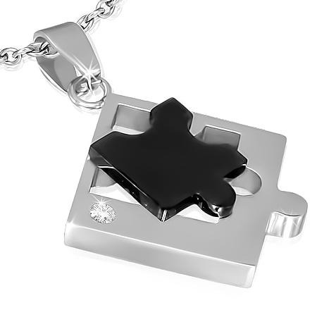ジグソーピースペンダント ピース 黒色 ブラック おもしろ サージカルステンレス ネックレス パーツ メンズ レディース トップ ペア アクセサリー チョーカー