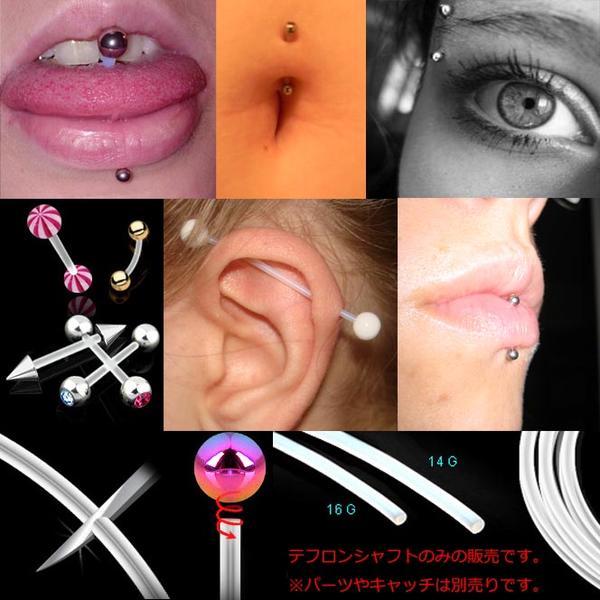 アイブローやヘソピアス、ニップルピアス、クチピアス、舌ピアス等いろいろな場所に使えるテフロン製のバーベルシャフト。非常に柔らかく、自分に合った長さにカットして使えるので、ファーストピアスにもおすすめ!金属アレルギーやホールを休めるためにも使え、妊婦用のヘソピアスなどいろいろな場所に使えます。ボールは別売りなので、自分の好みのボールにセットして使えます。