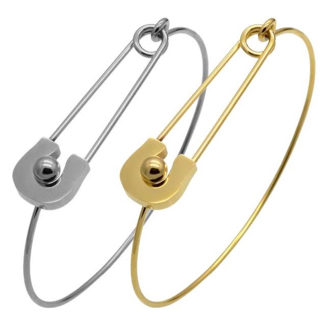 安全ピン サージカルステンレス316L バングル 1個販売 アームレット メンズ レディース 腕輪 手首 二の腕 腕 ブレスレット 固定型 リング型 楕円形 プレゼント ギフト シンプル 結婚式 パーティ おもしろい 面白い 個性的 セーフティピン 安ピン 金色 ゴールド 銀色 シルバー
