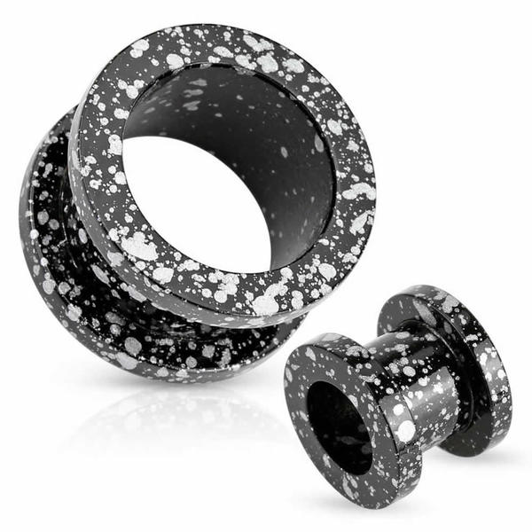 まるで絵の具が飛び散ったようなアーティスティックなトンネル型ボディピアス。色鮮やかな色彩がとても綺麗なボディピアス。個性的なコーディネートを彩るボディピアスです。素材はサージカルステンレスなので安心。トンネル型のボディピアスは装着もしやすく、ピアスホールに負担がかかりにくいので、ボディピアス初心者から上級者まで幅広く愛されている。ホールトゥピアスしても綺麗。