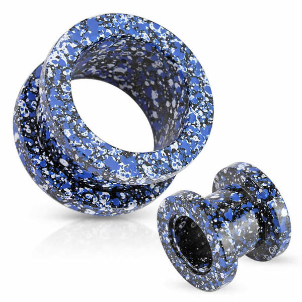 まるで絵の具が飛び散ったようなアーティスティックなトンネル型ボディピアス。色鮮やかな色彩がとても綺麗なボディピアス。個性的なコーディネートを彩るボディピアスです。素材はサージカルステンレスなので安心。トンネル型のボディピアスは装着もしやすく、ピアスホールに負担がかかりにくいので、ボディピアス初心者から上級者まで幅広く愛されている。ホールトゥピアスしても綺麗。