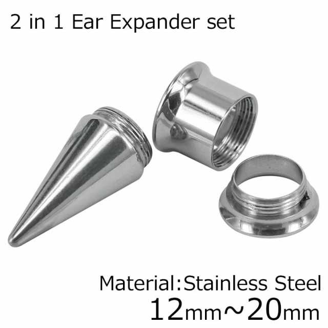 [12mm 14mm 16mm 18mm 20mm 拡張用 ボディピアス] エキスパンダー ダブルフレア セット 12ミリ 14ミリ 16ミリ 18ミリ 20ミリ ステンレス メンズ レディース インサーションテーパー 拡張器 ネジタイプ ボディーピアス ネジ式 大きくする ハーフインチ 銀色 シルバー