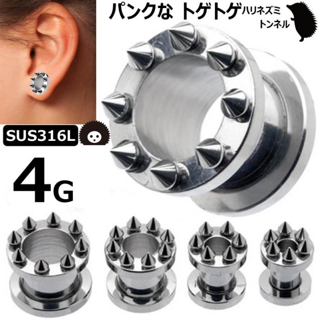 [ 4G おもしろ ボディピアス ] トゲトゲトンネル 4ゲージ 4ga ボディーピアス サージカルステンレス316L 低アレルギー メンズ レディース 土管型 ハリネズミ ネジ式 ネジタイプ 耳 プラグ ホールトゥピアス ホールピアス ラージホール 大きい 拡張 パンク スパイク コーン