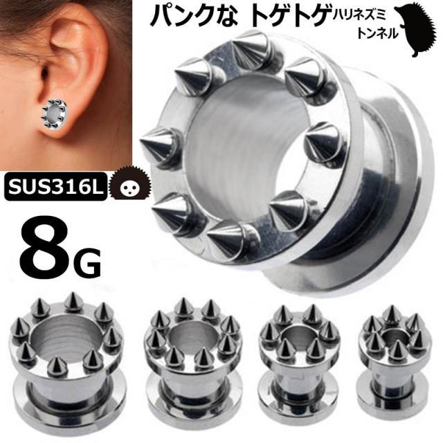 [ 8G おもしろ ボディピアス ] トゲトゲトンネル 8ゲージ 8ga ボディーピアス サージカルステンレス316L 低アレルギー メンズ レディース 土管型 ハリネズミ ネジ式 ネジタイプ 耳 プラグ ホールトゥピアス ホールピアス ラージホール 大きい 拡張 パンク スパイク コーン