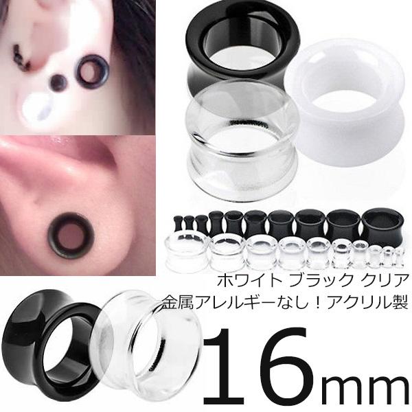 [ 16mm ホール ボディピアス ] アクリル ダブルフレア 16.0mm ボディーピアス プラスティック メンズ レディース シンプル プレーン ホールトゥピアス ホワイト 白色 透明 クリア 黒色 ブラック キャッチなし 両側 広い 埋め込み型 金属アレルギー 中空 穴あき 通す