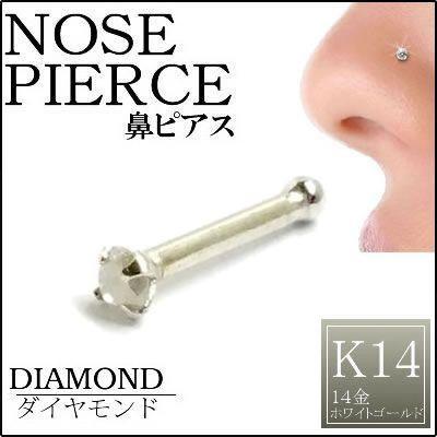 [ 14金 ホワイトゴールド ダイヤモンド 鼻ピアス 18G ] ダイヤモンド(クラリティ PK2 2.0mm)K14WG 18ゲージ 本物のダイヤモンド 14金ゴールド ギフト プレゼント 高級 ボディピアス メンズ レディース カラット ファーストピアス ストレート シャフト ノストリル 白金