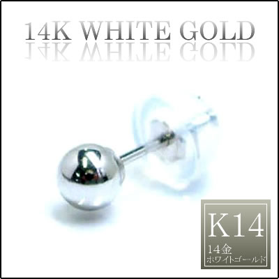 K14Wボール4mmピアス/1個販売 K14W ホワイトゴールド 本物の金のピアス 22G 22ゲージ メンズ レディース シンプル ボールピアス 球 高級 プレゼント 耳 軟骨 ゴールドピアス 細いポスト キャッチピアス 定番 ファーストピアス プレーン 白金