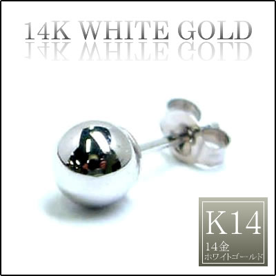 K14Wボール5mmピアス/1個販売 K14W ホワイトゴールド 本物の金のピアス 22G 22ゲージ メンズ レディース シンプル ボールピアス 球 高級 プレゼント 耳 軟骨 ゴールドピアス 細いポスト キャッチピアス 定番 ファーストピアス プレーン 白金