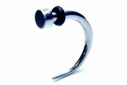 獣の爪をモチーフにしたボディピです。トップ部分がフラットになったクギ型をカーブさせたアクセサリーです。クールなボディジュエリーはパンクロック装いにピッタリです。ゲージも豊富なので大きさ違いを重ね付けに使ってもいい。シンプルですが存在感のあるクールなボディピアス。シャフトの部分が真っ直ぐのタイプもあります。