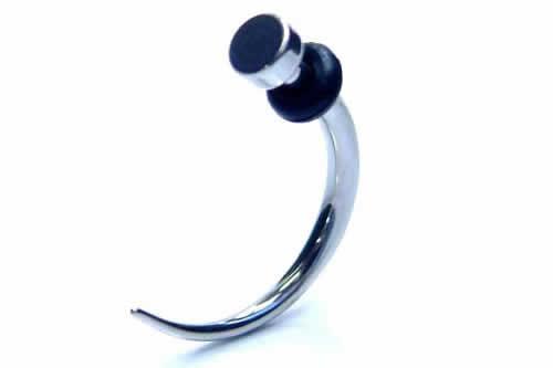 獣の爪をモチーフにしたボディピです。トップ部分がフラットになったクギ型をカーブさせたアクセサリーです。クールなボディジュエリーはパンクロック装いにピッタリです。ゲージも豊富なので大きさ違いを重ね付けに使ってもいい。シンプルですが存在感のあるクールなボディピアス。シャフトの部分が真っ直ぐのタイプもあります。