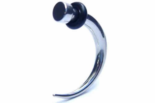 獣の爪をモチーフにしたボディピです。トップ部分がフラットになったクギ型をカーブさせたアクセサリーです。クールなボディジュエリーはパンクロック装いにピッタリです。ゲージも豊富なので大きさ違いを重ね付けに使ってもいい。シンプルですが存在感のあるクールなボディピアス。シャフトの部分が真っ直ぐのタイプもあります。