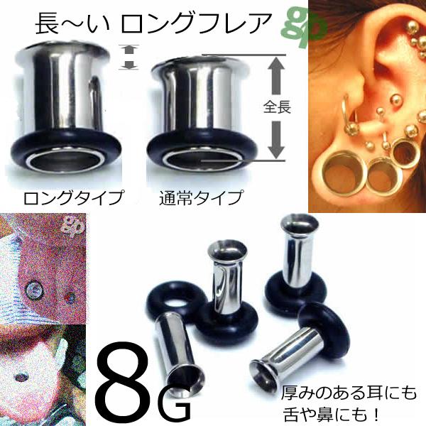 [ 長い 8G 全長:約11.5mm ]長いタイプ ロング シングル フレア 8ゲージ サージカルステンレス316L ボディピアス 低アレルギー ホールピアス メンズ レディース 銀色 シルバーカラー シンプル 耳が厚い 幅がある 舌ピアス ぶ厚い 分厚い 片側 広いゴムキャッチ ラバー