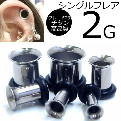 [ 2G 高品質 チタングレード23 ホールピアス ] シングルフレア ボディピアス 2ゲージ 2GA ボディーピアス チタン ニッケルフリー メンズ レディース 拡張 ファースト セカンド ホールトゥピアス ゴムキャッチ ラバーキャッチ 片側 広い 大きい ビッグ ラージ ホール 耳