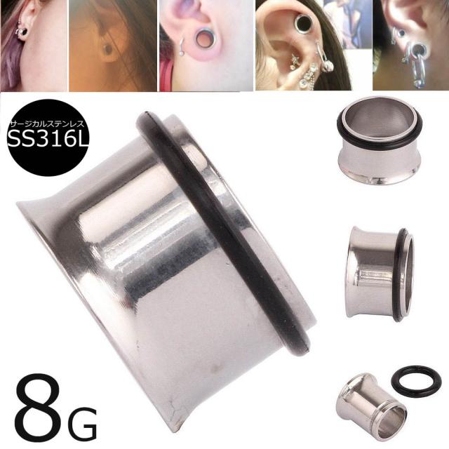 [ 8G ホール ボディピアス ] シングルフレア 8ゲージ 8Ga サージカルステンレス316L ボディーピアス 低アレルギー ホールピアス メンズ レディース 銀色 シルバーカラー 大きいサイズ ビッグサイズ シンプル 片側 広がった ゴムキャッチ シンプル プレーン 通す 穴 筒型