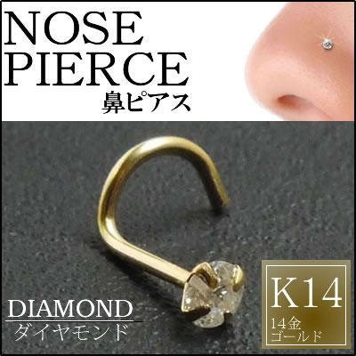 [ 14金 イエローゴールド ダイヤモンド 鼻ピアス 20G ] 小さい 小さめ ダイヤ(SI 1.5mm)K14YG ノーズスクリュー 20ゲージ 本物 14金ゴールド ギフト プレゼント 高級 ボディピアス メンズ レディース カラット スクリュウ ノストリル カーブ 1.5ミリ ランク 品質