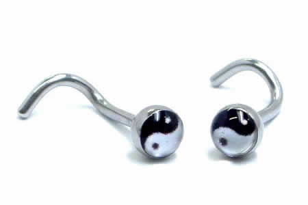 [ 18G ボディーピアス 鼻 ] 陰陽 鼻ピアス 18GA 18ゲージ サージカルステンレス316L ボディピアス メンズ レディース ノーズスクリュー ノーズスクリュウ ツイストシャフト 男性 女性 ファーストピアス ネジボール 対極図 白黒 ホワイト ブラック オリエンタル