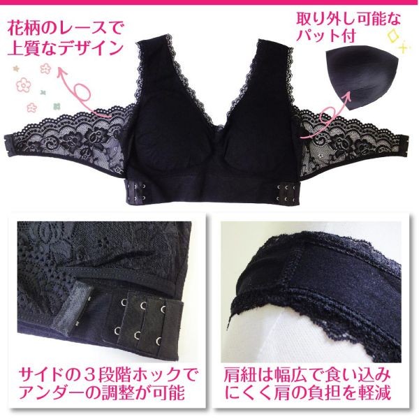 レディース ファッション ノンワイヤーブラ ノンワイヤー 脇高ブラ ナイトブラ バストアップ ブラ レース 刺繍 柄 スポーツ ブラジャー 補正下着 補整 矯正下着 夜 夜用 おやすみ ナイト ブラ 寝てる 寝る 谷間メイク ジョギング ワコール 美胸 即納 クロス レース ラクブラ 大きい サイズ バストケア コルセット ガードル レギンス スパッツ 脇肉 キャッチ 夜 寄る 横流れ 防止 黒 黒色 肌色 肌 優しい ホック セクシー ランジェリー 女性 女性用 インナー 下着