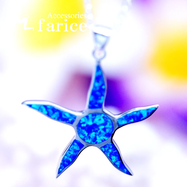 スターフィッシュ(ヒトデ) ブルーオパール・太陽風デザイン メンズ&レディース ハワイアンジュエリー シルバー925 ネックレス
