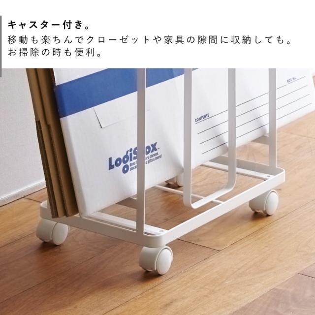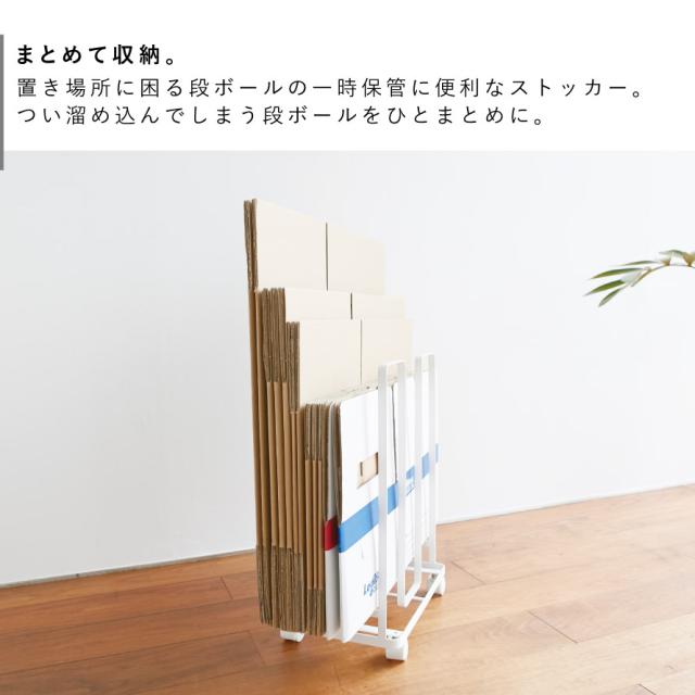 置き場所に困る段ボールの一時保管に便利なストッカー。ネットショッピング購入時など、つい溜め込んでしまう段ボールを場所を取らずにひとまとめに。