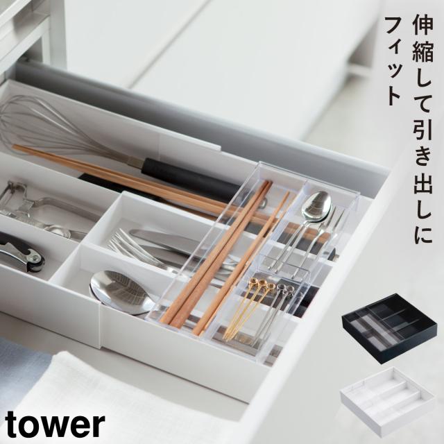 引き出し収納ケース カトラリーケース 引き出し カトラリー収納 伸縮&スライド カトラリートレー タワー tower 山崎実業 キッチン