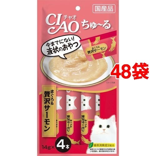 チャオ ちゅ〜る まぐろ&贅沢サーモン(4本入×48セット(1本14g))[猫のおやつ・サプリメント]