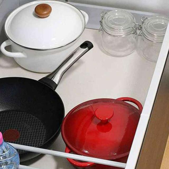 ハサミやカッターで簡単にお好みのサイズにカットできるため、食器棚や引き出し、吊戸棚など、必要な場所にぴったりと調整して使えます。