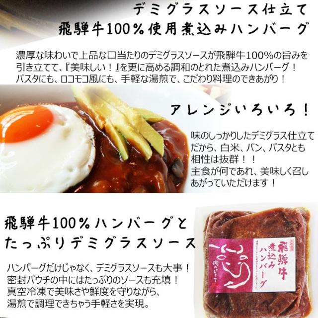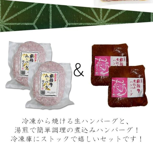 【マツコの知らない世界で紹介された飛騨牛煮込みハンバーグと朝の情報番組よーいドン!で紹介された飛騨牛生ハンバーグのセットです】飛騨牛生ハンバーグ×2個・飛騨牛煮込みハンバーグ×2個