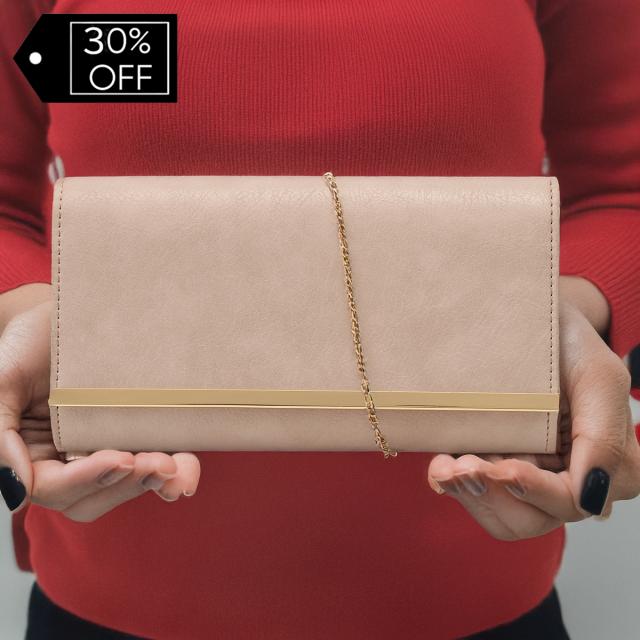 フェイクレザーのクラッチバッグは、結婚式やパーティーで大活躍すること間違いなし!
