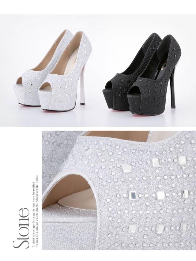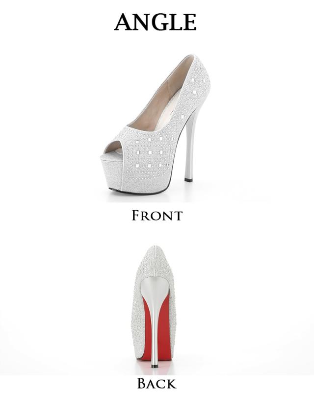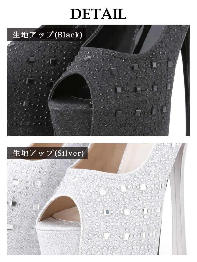 ☆全面に散りばめられたラインストーンが高級感を放つオープントゥヒールパンプス♪