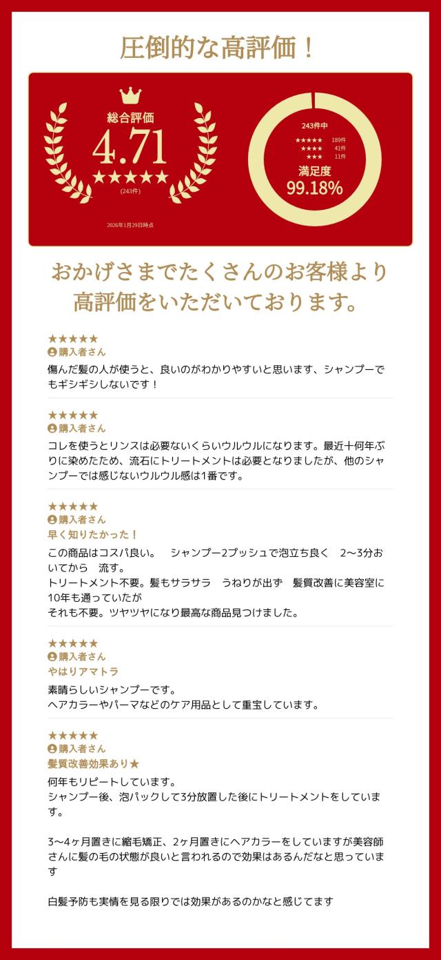 フルボ酸とヘマチンを配合したエイジングケア・シャンプーです。髪の80%を構成する成分であるケラチンとリンゴアミノ酸の洗浄剤で、シャンプーと同時にダメージを補修。100%液晶構造の高い浸透性により成分を髪の奥まで届け、シャンプーだけでも高いトリートメント効果。ヘマチンとフルボ酸が頭皮の細胞に働きかけ、白髪を予防し、美しい髪を育む環境を整えます。シリコンフリーとは思えない、すべすべ&つやつやな気持ちのいい洗い上がり。