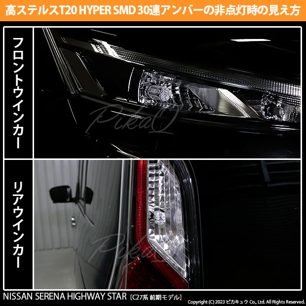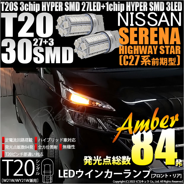 ニッサン セレナ ハイウェイスター (C27系 前期) 対応 LED FR ウインカーランプ T20S SMD 30連 アンバー 2個 6-B-3