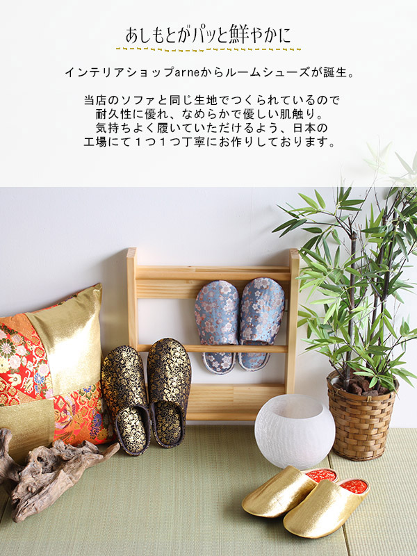 前詰まりスリッパ スリッパ オリジナル ルームシューズ M 西陣織 日本製 おしゃれ 室内履き 和柄 和モダン 古風 金襴 インテリア 引越し 》