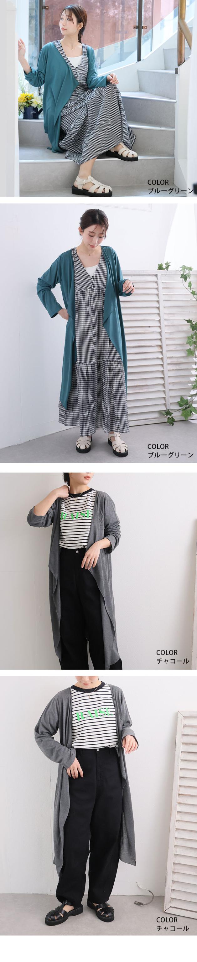 - くすみグリーンを購入しました 画像だとグレイに近いのかなと思い購入したのですが実際に見てみると紛うことなきくすみグリーン… 欲を言えばチャコールとホワイトの中間位の色…グレイがあれば良かったなと思います 手触りや着た感じは個人的にですが凄く良いと思いました サラッとしていて季節の変わり目や夏場にクーラーで冷えた時などに使えると思います 丈も膝丈くらいで短すぎず長すぎずで満足です 良い買い物が出来ました ありがとうございました