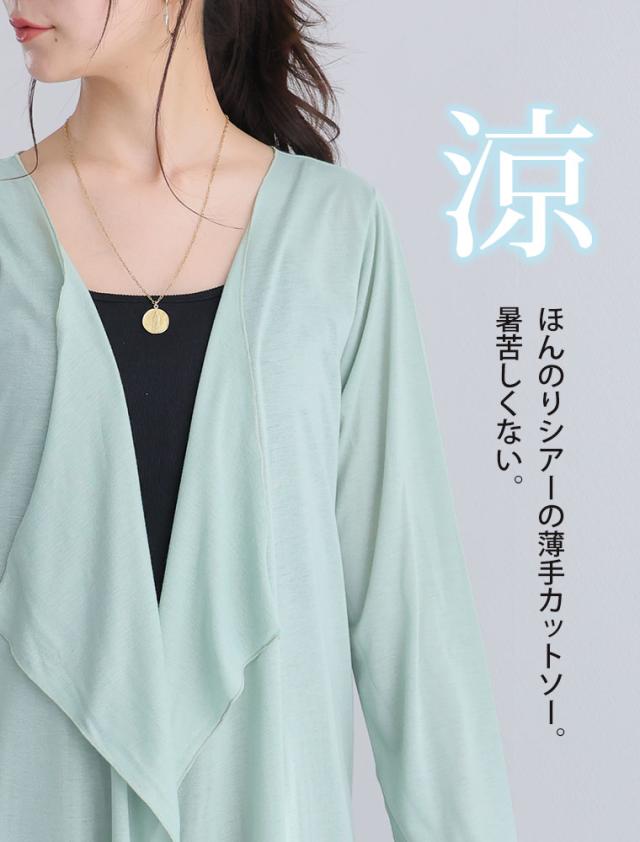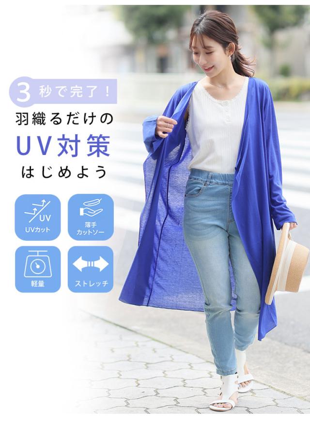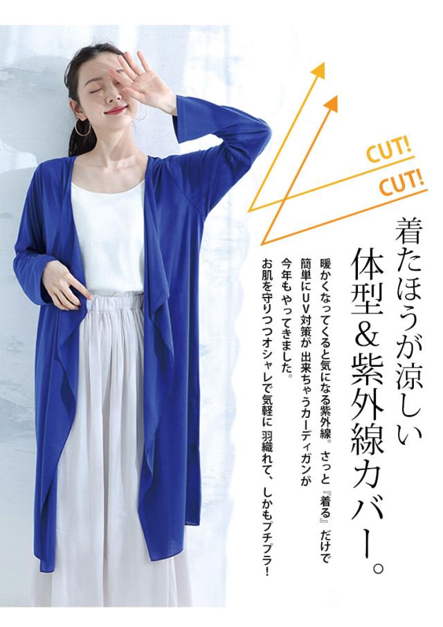 新色追加!! ヒラリと動きのあるシルエットでスッキリ着痩せ。UV加工トッパーカーデ