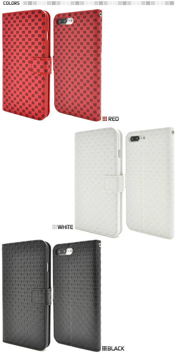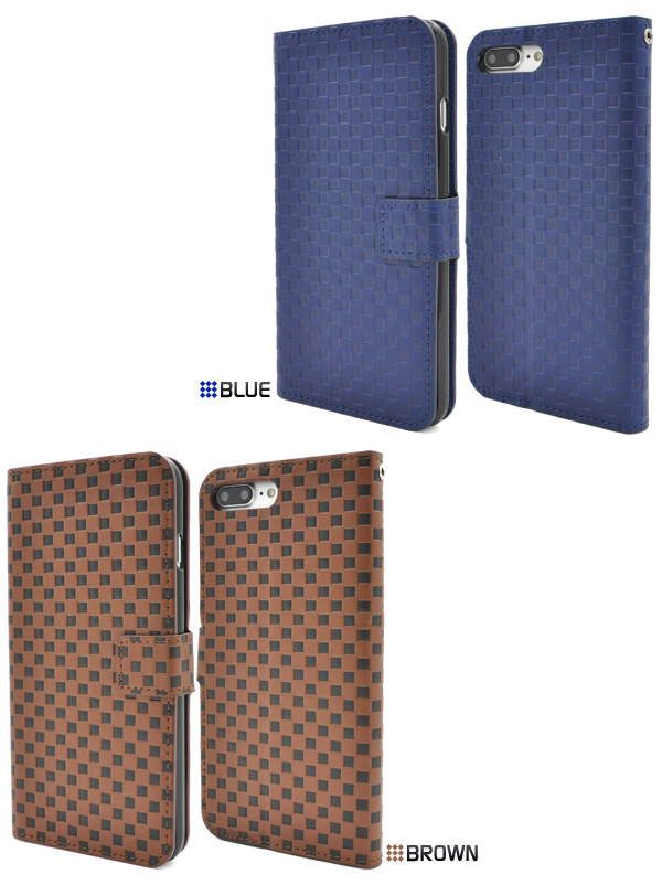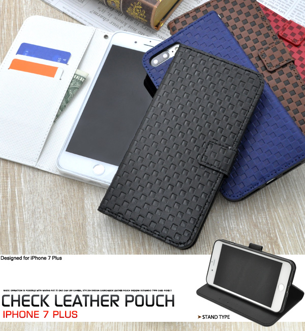 市松模様レザーデザインのiPhone8Plus/iPhone7Plus用スタンドケースポーチ。