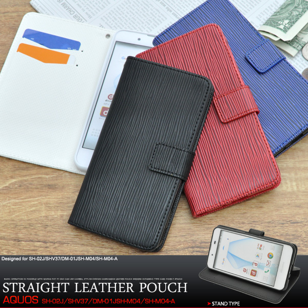 スマホケース 手帳型 ストレートレザーケース AQUOS EVER SH-02J AQUOS U SHV37 Disney mobile DM-01J AQUOS SH-M04 SH-M04-A AQUOS L UQ mobile