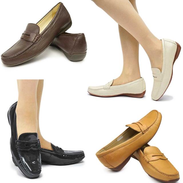 リーガル レディース モカシン レザー カジュアル 本革 通勤 ビジネス エナメル フラットシューズ 黒 ブラック 白 アイボリー ダークブラウン 茶色 定番
