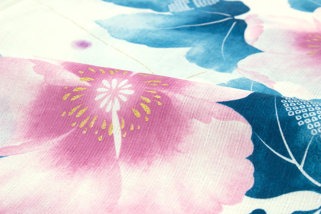 ラメの花弁が煌めく花芙蓉がデザインされた柄ゆきです。