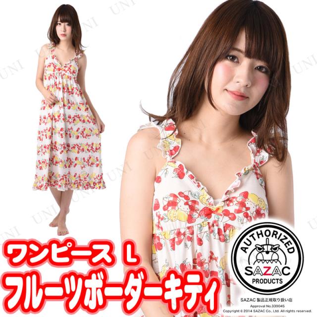 サンリオ,キャラクター,レディース,ファッション,女性用,大人用,ルームウェア,部屋着,パジャマ,寝巻き,寝間着,sazac_roomwear,フルーツボーダーキティワンピース IV・レディスL,25979skey 4560419585025